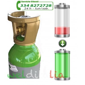 Immaginiamo che si lavori al TIG utilizzando un flusso in uscita di 7 lt/minuto . Una bombola da 1 lt del tipo usa e getta durerà: 110 / 7 = 15,7 minuti ad erogazione costante.